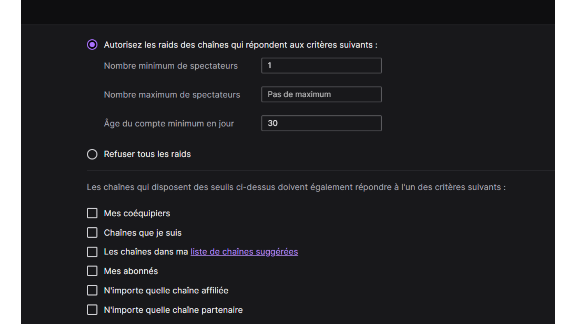 L’activation des raids est fortement conseillĆ©e pour permettre Ć d’autres streamers de faire votre promotion !
